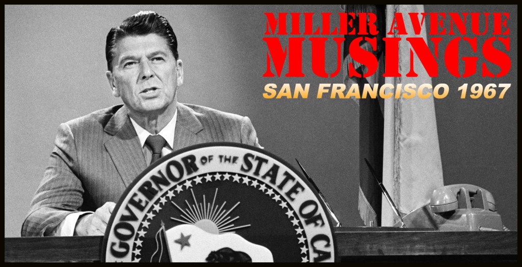 As the summer of 1967 rolled on, the state of California, which had been Democrat controlled for as long as I could remember was now in the hands of an extremely conservative administration.  The previous November had seen the election of Ronald Reagan as governor which was the first time a politician from the extreme right had broken through.