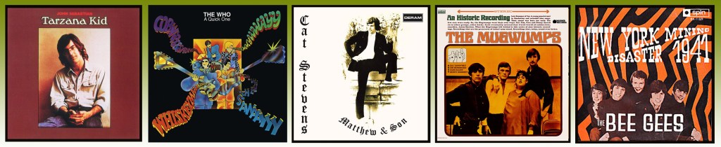 From left: John Sebastian’s Tarzana Kid, The Who’s A Quick One, Cat Stevens, The Mugwumps and the Bee Gees.