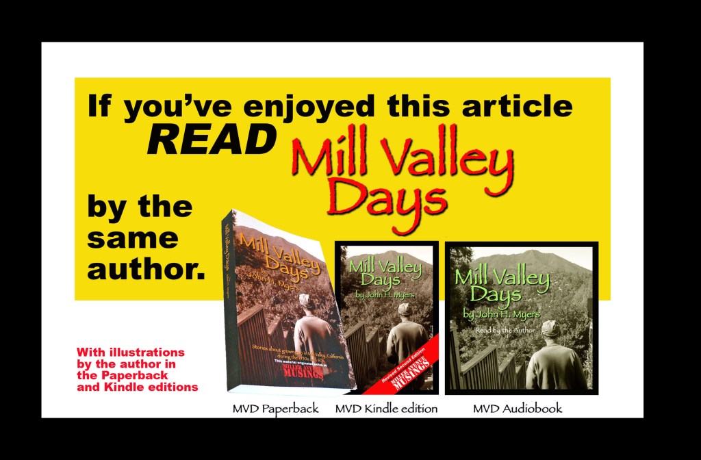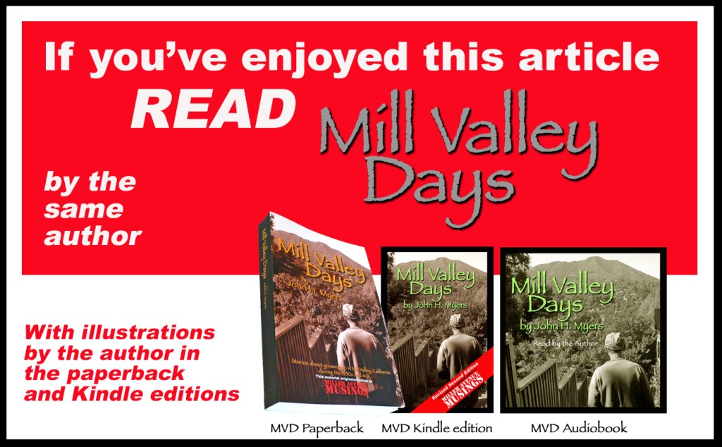 I must also thank Natalie Snoyman at the Mill Valley Library for research details.  For anyone doing research on Mill Valley history she can be reached at: nsnoyman@cityofmillvalley.org