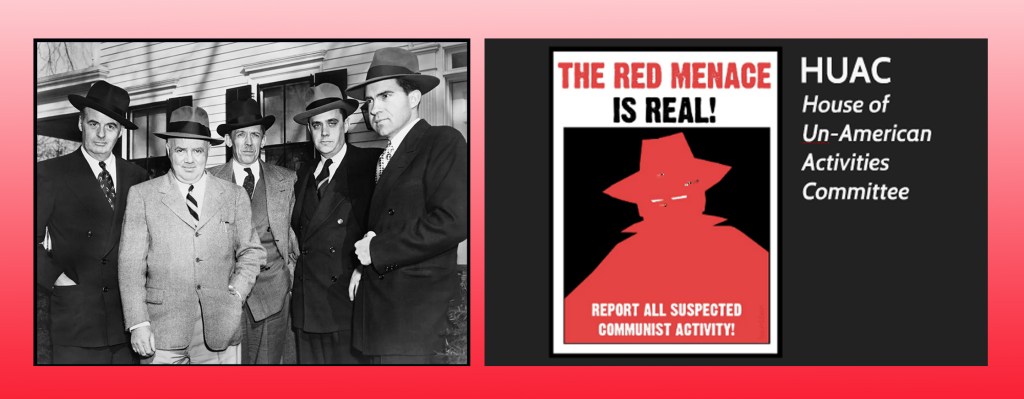 People who aren’t too clear on their history often mix up the House Un-American Activities Committee with the senate committee of Joe McCarthy but the two are separate. The House Committee began stirring things up in 1947 while Joe McCarthy didn’t discover Anti-Communism as a cause until 1950. Once he did, he went at it with a vengeance, grilling ordinary citizens on television about petitions they might have signed years before or meetings they may have attended.